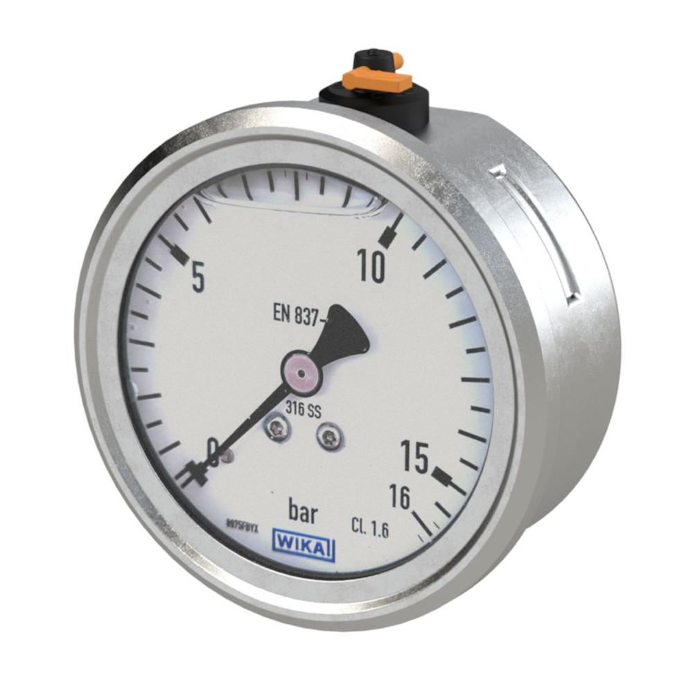 - De glycerine-manometer met roestvrijstalen behuizing dient voor trillingsdempende drukmeting in pneumatische en hydraulische systemen tot 4 bar, met name bij pulserende of stootbelastingen.