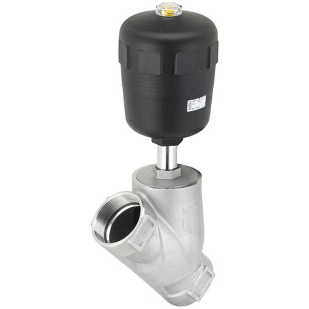 - De pneumatisch bediende schuine afsluitklep is uitermate geschikt voor gebruik met water, alcoholen, oliën, brandstoffen, hydraulische vloeistoffen, zoutoplossingen, logen, organische oplosmiddelenen stoom.