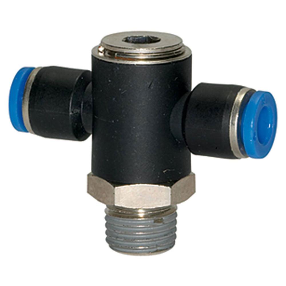 - De T-steekkoppeling is geschikt voor het aftakken van persluchtslangen in pneumatische installaties.