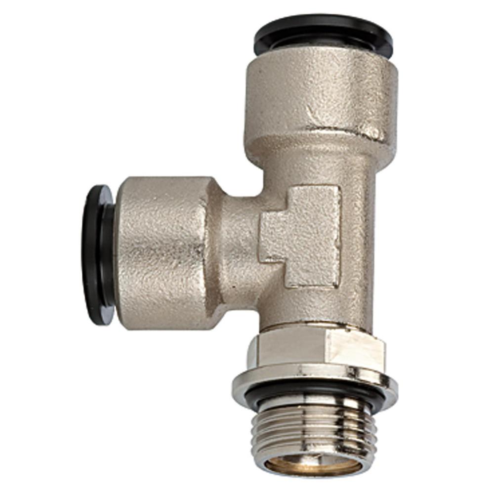 - De T-steekkoppeling is een draaibare snelkoppeling voor de distributie en aansluiting van pneumatische slangen in perslucht- en vacuümleidingen.