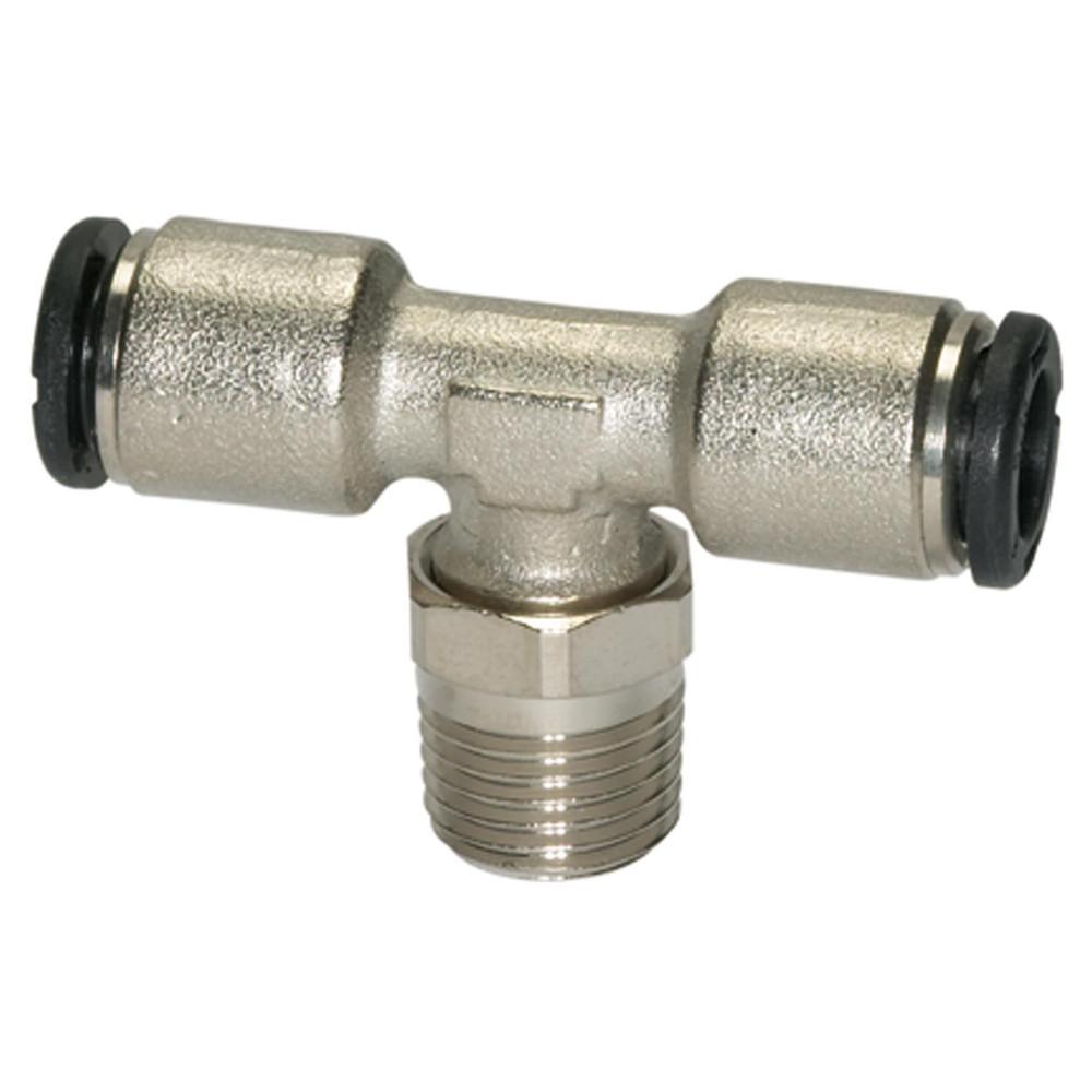 - De T-steekkoppeling is een draaibare snelkoppeling voor het verbinden en verdelen van pneumatische slangen in perslucht- en vacuümleidingen.